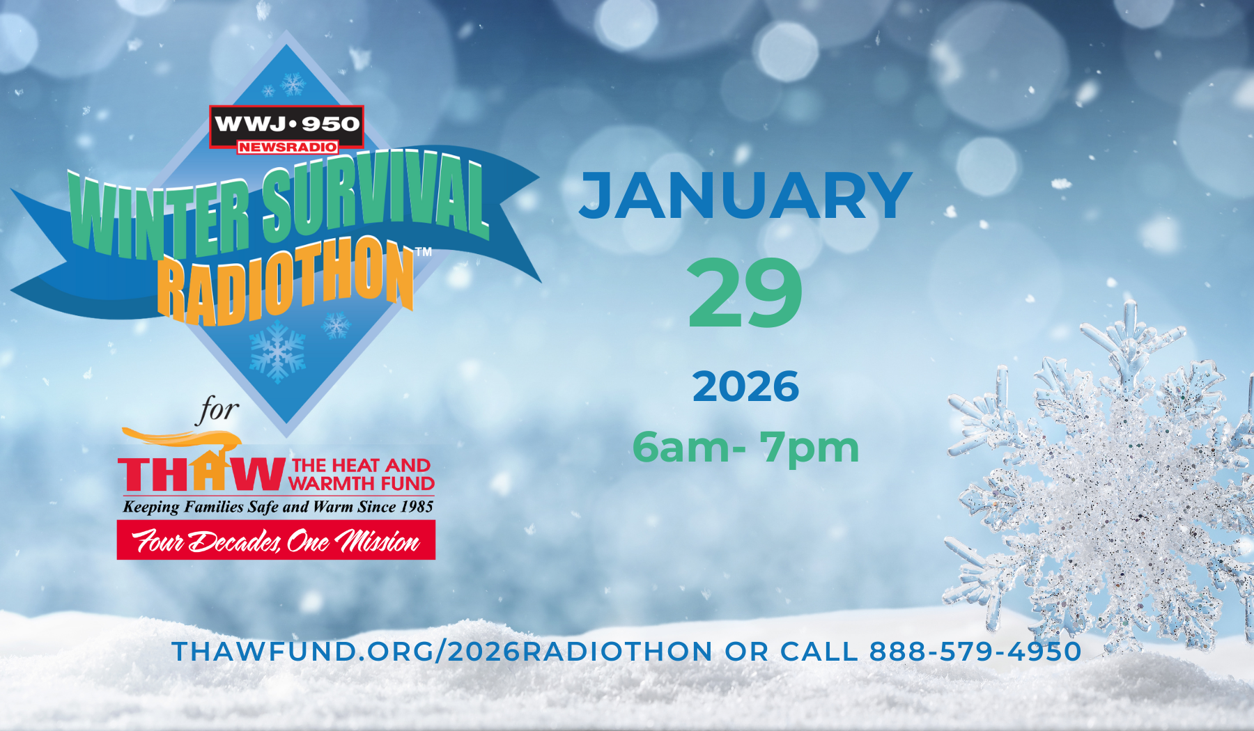 THAW and WWJ Newsradio 950 are teaming up once again to put on the annual Winter Survival Radiothon on January 29th, 2026! Tune in to WWJ 950 on your AM radio or tap in online on the WWJ website from 6am – 7pm to hear from THAW representatives and customers, learn more about the work we do, and, most importantly, donate to help keep Michigan families healthy, safe, and warm!