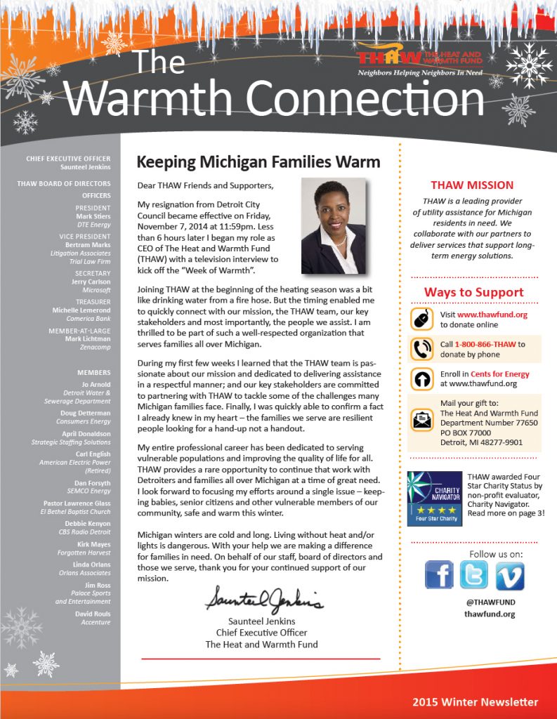 The Warmth Connection – Winter 2015 Newsletter